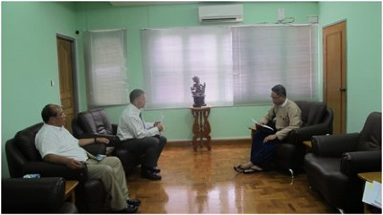 The delegation led by Mr. Anthony (Tony) Cortis, Venture Lead Myanmar, Shell Myanmar Energy Pte. Ltd., visited the office of Directorate of Investment and Company Administration (No.1, Thitsar Street, Yankin Township) in Yangon at 3:00 pm on 6th, August 2015 and cordially discussed matters relating to the investment in energy sector.