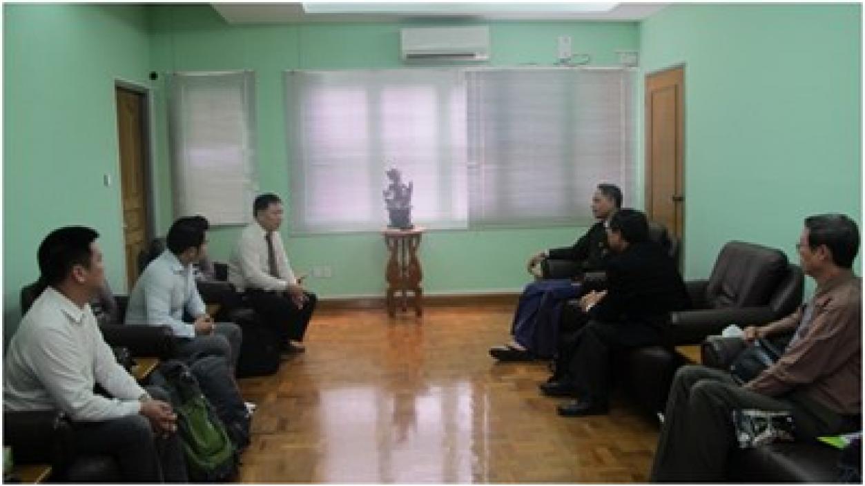 The delegation led by U Htun Myint, President, San Myanmar Company Limited visited  the office  of  Directorate of   Investment  and  Company Administration ( No.1, Thitsar Street, Yankin Township) in Yangon at 10:00 a.m on 13th  August, 2015 and cordially discussed matters relating to the investment.