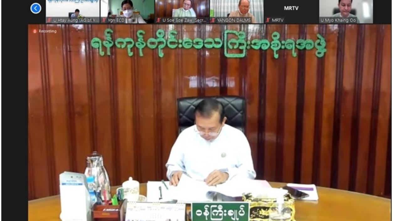 Yangon Region Investment Committee (YRIC) meeting (11/2021) was held at the meeting room of Yangon Region Investment Committee on 15th December 2021, attended by Chief Minister for Yangon Region U Hla Soe, Chairman of the YRIC and members of the Committee.
