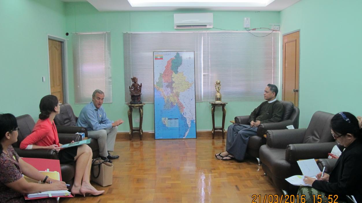Mr. William D. Greenlee, Jr., Managing Director of DFDL Myanmar Limited and group paid a call at office, Yangon, Directorate of Investment and Company Administration at 16:00 pm on 21rd March, 2016 and cordially discussed about investment to undertake Luxury Cruise and Land Tour Services for MIC permit application in Myanmar.