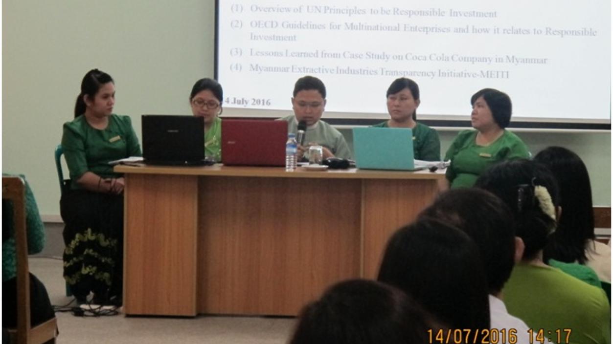 The internal seminar on Responsible Investment was conducted at the office of Directorate of Investment and Company Administration in Yangon at (14:00) pm on 14th July, 2016. That meeting was attended by officials led by Deputy Director General.