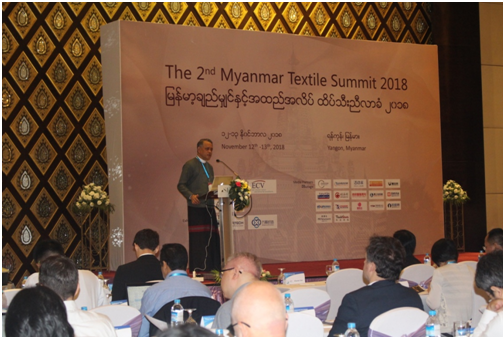 U Aung Naing Oo, Director General of the Directorate of Investment and Company Administration, Ministry of Planning and Finance made presentation on the topic “Textile and Apparel Industry, Myanmar and FTAs” at the second Myanmar Textile Summit 2018 which was held in Sedona Hotel, Yangon on 12th November 2018.