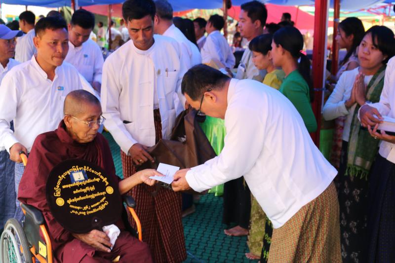 A ceremony to confer religious titles and donation of rice for the year 2019 was held on 20th March 2019 (Fullmoon of Tabaung 1380 ME) in Uppatasanti Pagoda compound, Nay Pyi Taw. U Aung Naing Oo, Director General of the Directorate of Investment and Company Administration, U Than Aung Kyaw, Director General of the Foreign Economic Relations Department, and officials from Ministry of Investment and Foreign Economic Relations donated rice and offertories worth 3,766,000MMK to 254 Sayardaws and 14 nuns. A total of 50 participants including Assistant Permanent Secretaries, Directors, Officials and staffs attended the ceremony.