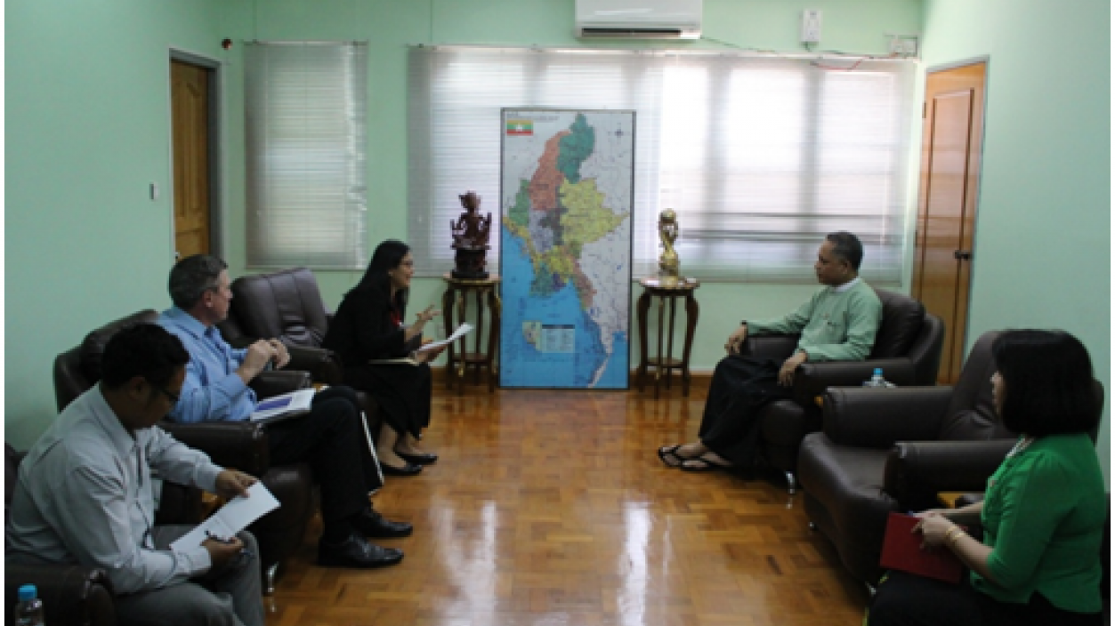 U Aung Naing Oo, Director General of the Directorate of Investment and Company Administration received Mr. Peter Brimble, Senior Technical Advisor of the DaNa Facility and his team in Yangon on 29th March 2019. At the meeting, they cordially discussed the cooperation programs for the Investment facilitation and promotion in order to develop the States and Regions of Myanmar.