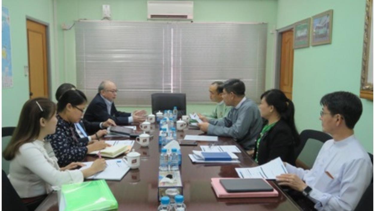 U Thant Sin Lwin, Acting Director General of the Directorate of Investment and Company Administration met with Mr. Kazuo Mishima, Project Team Leader of Japan International Cooperation Agency (JICA) on 3rd July, 2019 in Yangon and cordially discussed matters relating to the technical cooperation on investment promotion.