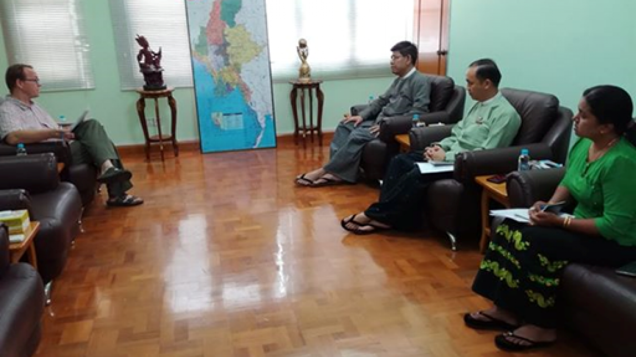 U Thant Sin Lwin, Acting Director General of Directorate of Investment and Company Administration (DICA) received Mr. Joerg Stahlhut, Chief of Governance and Sustainable Peace Unit of United Nations Development Programme on 23rd May, 2019. During the meeting, they cordially discussed matters relating to cooperation.