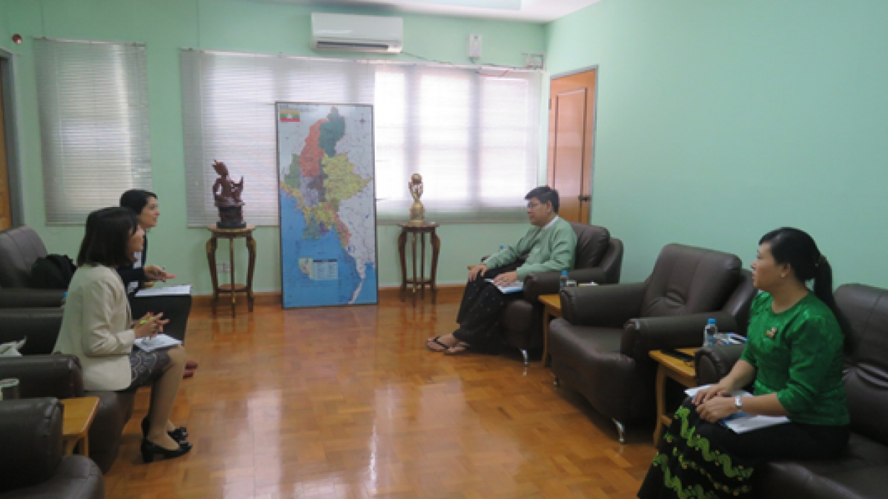 U Thant Sin Lwin, Acting Director General of Directorate of Investment and Company Administration (DICA) received Dr. Angela Tritto, Professor from City University of Hong Kong and her team on 24th May, 2019. During the meeting, they cordially discussed matters relating to cooperation.