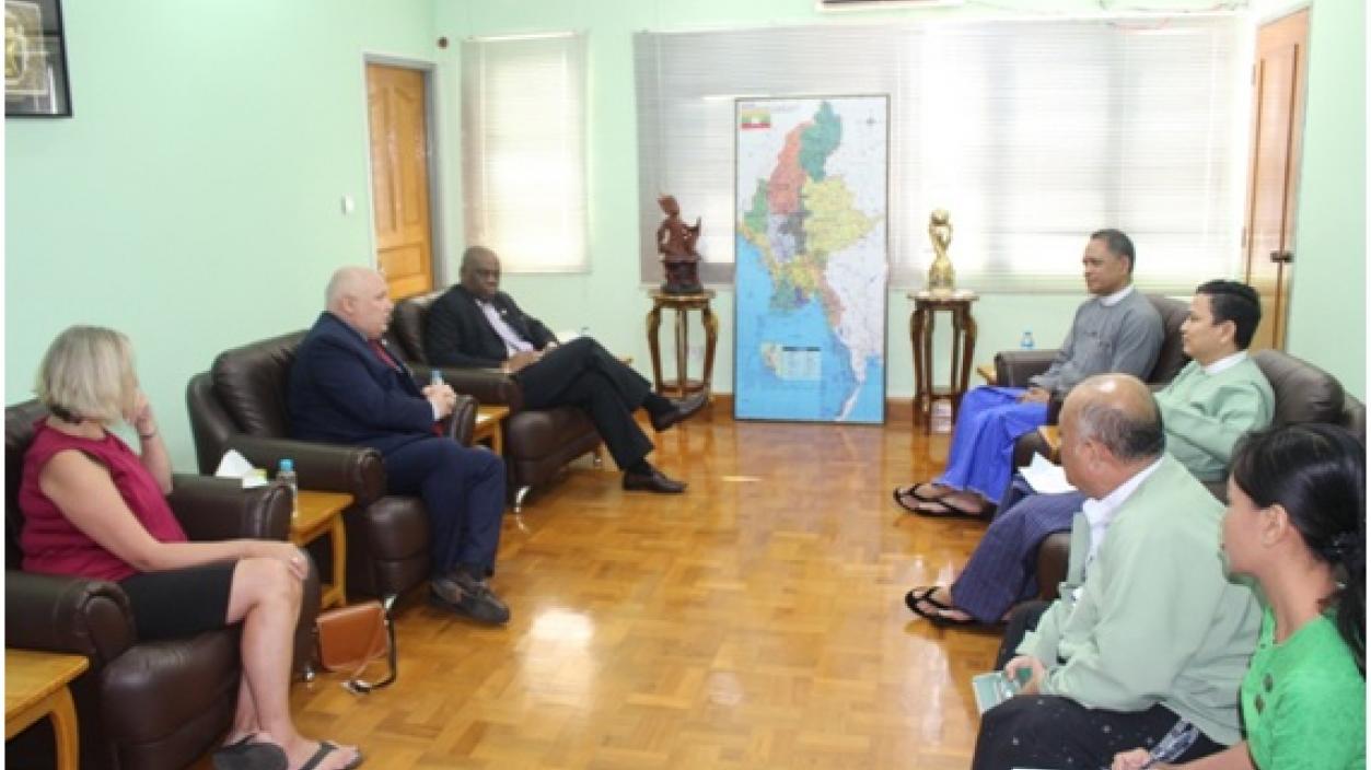 U Aung Naing Oo, Director General of the Directorate of Investment and Company Administration received a delegation comprising of Mr. Douglas Barnes, Director from British Embassy and Mr. Daryl Orchard, Headmaster of Dulwich College on 15th November, 2018. During the meeting, they discussed mainly focus on the business related matters.
