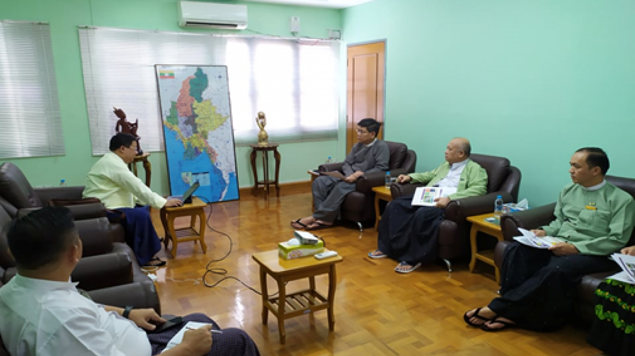 U Thant Sin Lwin, Acting Director General of the Directorate of Investment and Company Administration received U Pye Phyo Wai, Managing Director of Capital Investment & Consultancy Group and his team on 23rd May 2019 in Yangon. At the meeting, they discussed the matters relating to the investment procedures.
