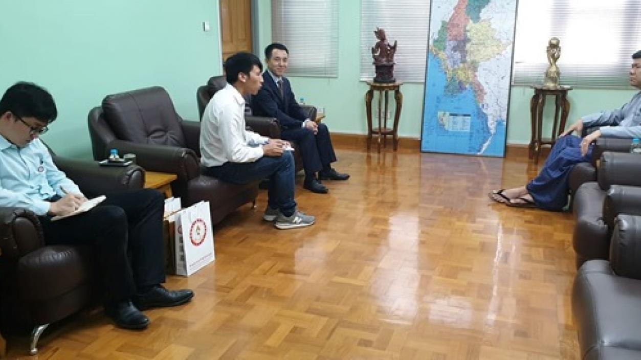 U Thant Sin Lwin, Acting Director General of Directorate of Investment and Company Administration (DICA) received Mr. Li Fuquan, President from China Myanmar Economic Cooperation and Development Promotion Association and his team on 27th May, 2019. During the meeting, they discussed matters relating to investment cooperation.
