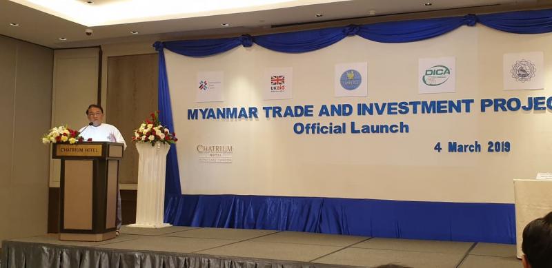 An event launching for the Trade and Investment Project (TIP) which will improve trade competitiveness and business and investment climate was held at Chatrium Hotel in Yangon on 4th March 2019, organized by Ministry of Commerce, Directorate of Investment and Company Administration and the United Kingdom Department for International Development- DFID and International Trade Centre (ITC).