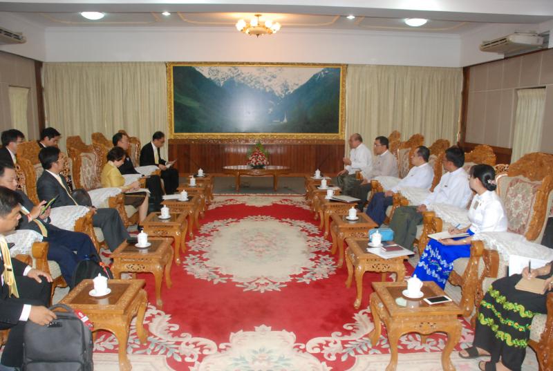 U Thaung Tun, Chairman of the Myanmar Investment Commission (MIC) and Union Minister for Ministry of Office of the Union Government, and Dr. Win Myat Aye, Chairman for Advisory Board of Committee for Implementation of Recommendations on Rakhine State and Union Minister for Ministry of Social Welfare, Relief and Resettlement, received Mr. Sathit Linpongpan, President of Institute of Business Economics Research and Development (IBERD) Foundation and delegation on 17th July, 2018 in Nay Pyi Taw. They discussed matters relating to trade and investment promotion between Myanmar and Thailand as well as cooperation human resource development in Rakhine State. The sectors discussed include renewable energy, fisheries, and environmental sustainability managements.