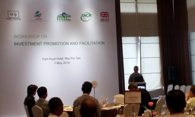 The Workshop on Investment Promotion and Facilitation was held at Park Royal Hotel, Nay Pyi Taw on 7th May 2019 with the collaboration of the Myanmar Investment Commission, the Directorate of Investment and Company Administration, UK Department for International Development (DFID) and DaNa Facility.