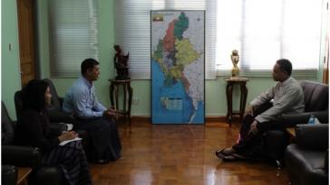 U Aung Naing Oo, Director General of the Directorate of Investment and Company Administration received a team of Mr. Toru MAEDA, Minister/ Deputy...
