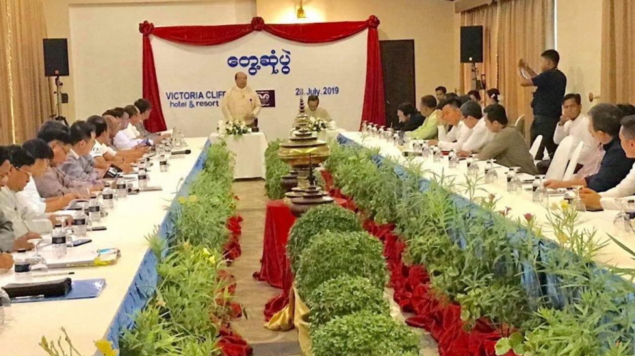 Union Minister for Investment and Foreign Economic Relations and Chairperson of Myanmar Investment Commission (MIC), U Thaung Tun and Union Minister for Hotels and Tourism, U Ohn Maung, accompanied by officials met the representatives from Kawthaung Chambers of Commerce and Industry, businessmen from tourism sector and local communities on July 29, 2019 at 10:00 am at Victoria Cliff Hotel.