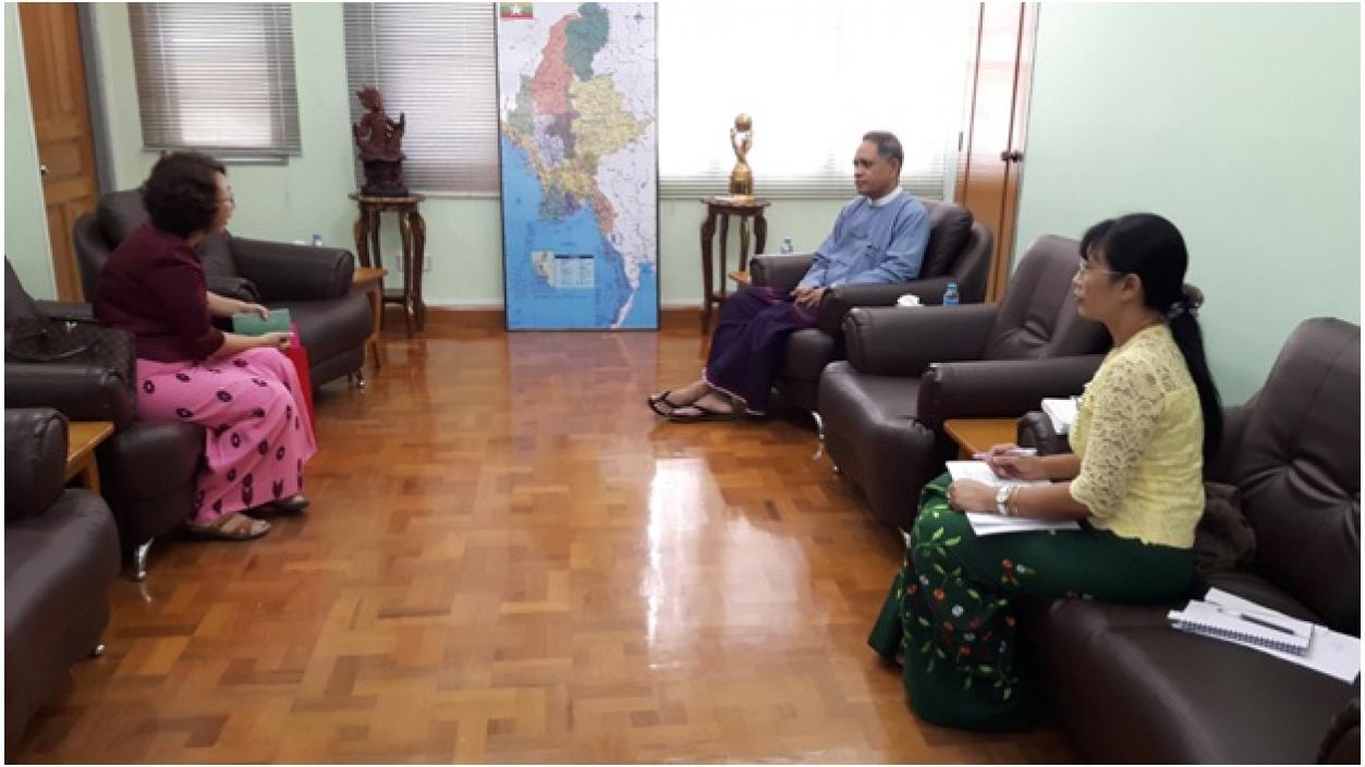 Hung Kiu (Myanmar) Garment Manufacturing Ltd. မှ အကြံပေး ဖြစ်သူ ဒေါက်တာ စမ်းဆင့်ဆင့်ထွန်းသည် ရင်းနှီးမြှုပ်နှံမှုနှင့် ကုမ္ပဏီများညွှန်ကြားမှု ဦးစီးဌာန၊ ညွှန်ကြား ရေးမှူးချုပ် ဦးအောင်နိုင်ဦးနှင့် ရန်ကုန်မြို့တွင် ၂၀၁၇ ခုနှစ် စက်တင်ဘာလ ၅ရက်နေ့ နေ့လည်ပိုင်း၌ ရင်းနှီးမြှုပ်နှံမှုကိစ္စရပ်များနှင့်စပ်လျဉ်း၍ လာရောက်တွေ့ဆုံ ဆွေးနွေးခဲ့ပါသည်။