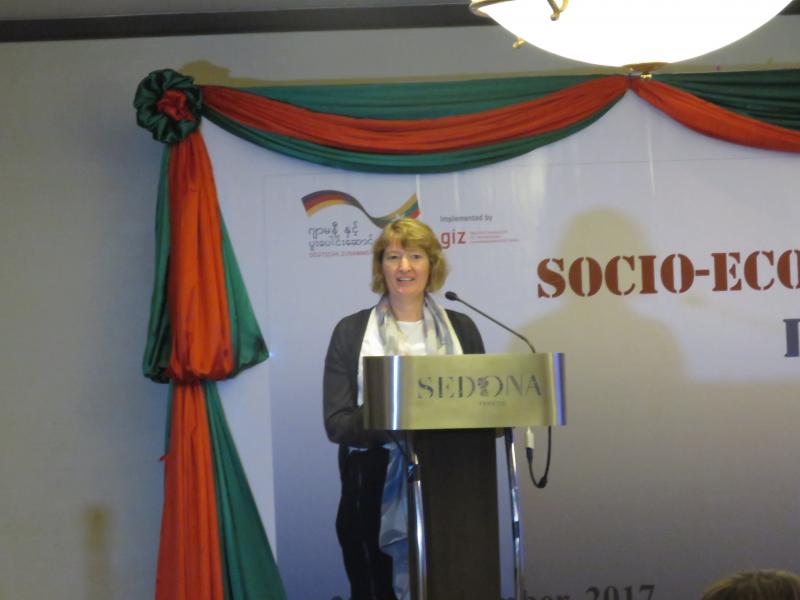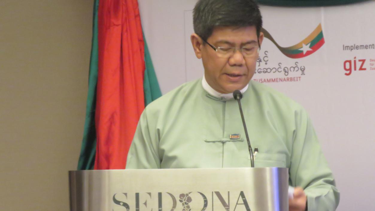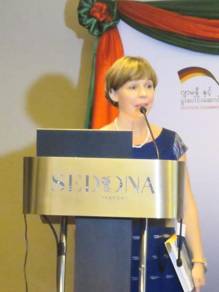 ရင်းနှီးမြှုပ်နှံမှုနှင့် ကုမ္ပဏီများညွှန်ကြားမှုဦးစီးဌာန ဒုတိယညွှန်ကြားရေးမှူးချုပ် ဦးသန့်စင်လွင် နှင့် Head of Cooperation at the Embassy of the Federal Republic of Germany ဖြစ်သူMsKatharina Spiessတို့မှအဖွင့်အမှာစကားပြောကြားခဲ့ပြီး Head of GIZ programme “Strengthening Capacities of the Private Sector” in Myanmar ဖြစ်သူ Irina Scheffmann နှင့် ဆောက်လုပ်ရေးဝန်ကြီးဌာန၊ မြို့ပြနှင့်အိမ်ယာဖွံ့ဖြိုးရေးဦးစီးဌာန၊ ဒုတိယညွှန်ကြားရေးမှူးချုပ် ဒေါ်အေးအေးမြင့် တို့မှ “The Socio-Economic Atlas of Myanmar”နှင့်ပတ်သက်၍ မိတ်ဆက်ပြောကြားခဲ့ကြပါသည်။