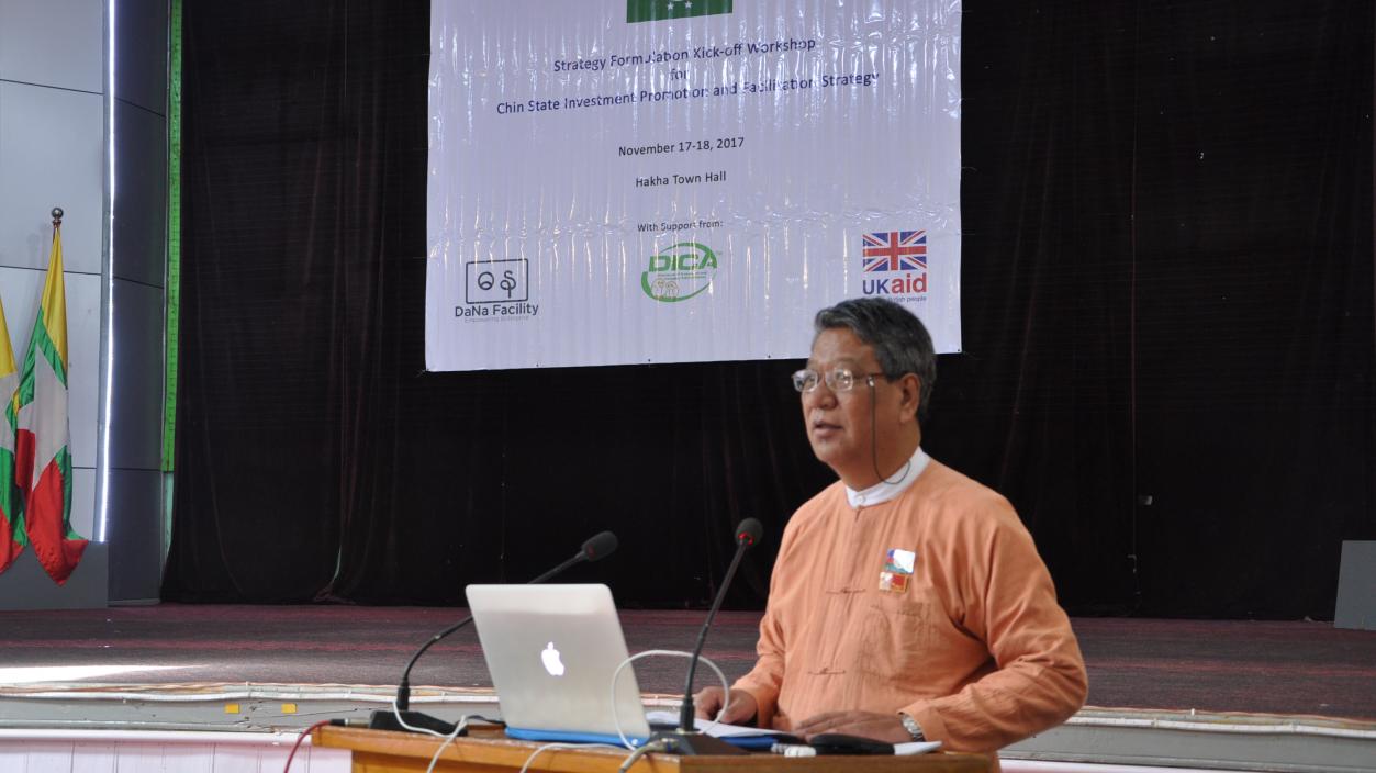 စီမံကိန်းနှင့်ဘဏ္ဍာရေးဝန်ကြီးဌာန၊ ရင်းနှီးမြှုပ်နှံမှုနှင့်ကုမ္ပဏီများညွှန်ကြားမှုဦးစီးဌာနနှင့် DaNa Facility (UK Aid) ပူးပေါင်း၍ ချင်းပြည်နယ် ရင်းနှီးမြှုပ်နှံမှုမြှင့်တင်ရေးနှင့် အဆင်ပြေ ချောမွေ့ရေး ကနဦးအလုပ်ရုံဆွေးနွေးပွဲ အခမ်းအနားအား ချင်းပြည်နယ်၊ ဟားခါးမြို့တွင် ၂၀၁၇ ခုနှစ် နိုဝင်ဘာလ ၁၇ ရက်နေ့၌ ကျင်းပ ပြုလုပ်ခဲ့ပါသည်။