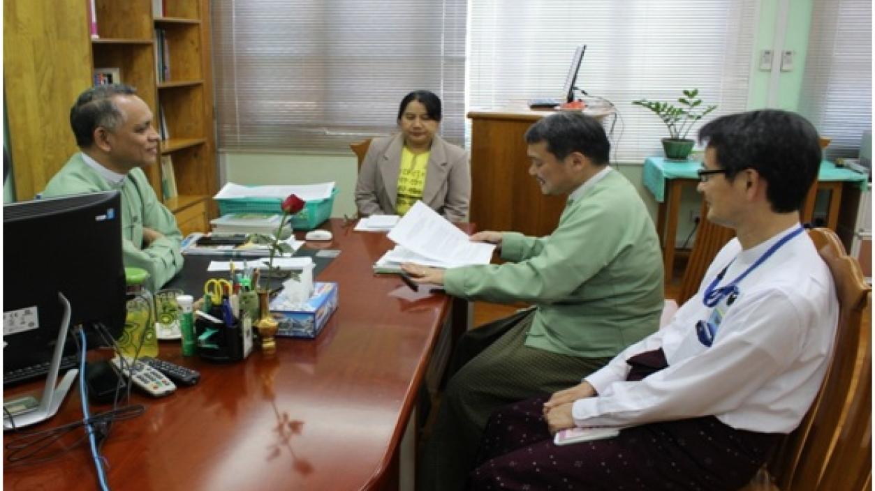 ဂျပန်အပြည်ပြည်ဆိုင်ရာ ပူးပေါင်းဆောင်ရွက်ရေး အေဂျင်စီ (JICA) မှ Senior Advisor ဖြစ်သူ Mr. Toru HOMMA သည် ရင်းနှီးမြှုပ်နှံမှုနှင့် ကုမ္ပဏီများညွှန်ကြားမှု ဦးစီးဌာန၊ ညွှန်ကြားရေးမှူးချုပ်၊ ဦးအောင်နိုင်ဦးနှင့် ရန်ကုန်မြို့တွင် ၂၀၁၈ ခုနှစ် ဖေဖော်ဝါရီလ (၁၉) ရက်နေ့၌ လာရောက်တွေ့ဆုံပြီး Productivity Improvement in the Private and Public Sector နှင့်စပ်လျဉ်း၍ ဆောင်ရွက်မည့် သုတေသနဆိုင်ရာကိစ္စရပ်များအား ဆွေးနွေးခဲ့ကြပါ သည်။