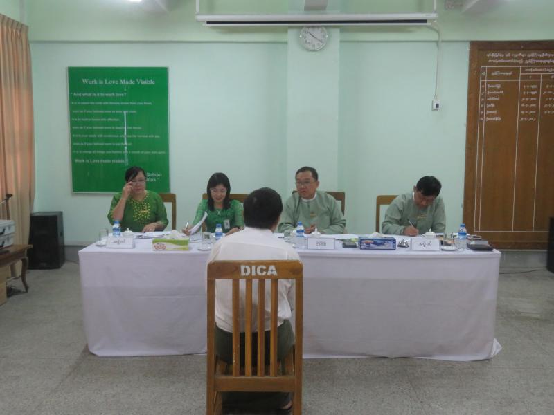 ရင်းနှီးမြှုပ်နှံမှုနှင့် ကုမ္ပဏီများညွှန်ကြားမှု ဦးစီးဌာနတွင် လစ်လပ်လျက်ရှိသော ဒုတိယ ဦးစီးမှူး ရာထူးနေရာများအတွက် ရုံးချုပ်တွင် ရေးဖြေစာမေးပွဲအောင်မြင်သည့် ၃၈ ဦးအား ဒုတိယ ညွှန်ကြားရေးမှူးချုပ် ဦးသန်းအောင်ကျော် ဦးဆောင်၍ အဖွဲ့ဝင် ၃ဦးဖြင့် ၂၀၁၈ ခုနှစ် မတ်လ ၂၁ ရက်နေ့တွင် လူတွေ့/နှုတ်ဖြေ စစ်ဆေးခြင်းကို ဆောင်ရွက်ခဲ့ကြောင်း သတင်းရရှိပါသည်။