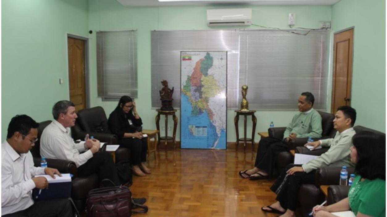 The DaNa Facility မှ Team Leader ဖြစ်သူ Mr. Peter Brimble နှင့် အဖွဲ့သည် ရင်းနှီးမြှုပ်နှံမှုနှင့် ကုမ္ပဏီများ ညွှန်ကြားမှုဦးစီးဌာနမှ ညွှန်ကြားရေးမှူးချုပ် ဦးအောင်နိုင်ဦးအား ၂၀၁၈ ခုနှစ် ဇွန်လ ၁ ရက်နေ့တွင် ရန်ကုန်မြို့၌ လာရောက်တွေ့ဆုံခဲ့ပြီး မြန်မာနိုင်ငံတွင် ရင်းနှီးမြှုပ်နှံမှုမြှင့်တင်ရေးနှင့် ပူးပေါင်း ဆောင်ရွက်မှုဆိုင်ရာ ကိစ္စရပ်များကို ဆွေးနွေးခဲ့ပါသည်။
