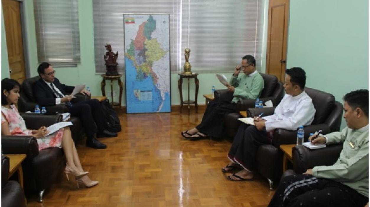 အာရှဖွံ့ဖြိုးရေးဘဏ်မှ ဥပဒေအကြံပေးများ ဖြစ်သည့် Mr. Rober San Pe and Ms. Melinda Thet Tun တို့သည် ရင်းနှီးမြှုပ်နှံမှုနှင့်ကုမ္ပဏီများ ညွှန်ကြားမှုဦးစီးဌာန၊ ညွှန်ကြားရေးမှူးချုပ် ဦးအောင်နိုင်ဦးနှင့် ၂၀၁၈ ခုနှစ် ဇွန်လ ၁ ရက်နေ့တွင် လာရောက်တွေ့ဆုံ၍ မြန်မာနိုင်ငံ၏ ရင်းနှီးမြှုပ်နှံမှု ဝန်းကျင်ပိုမိုကောင်းမွန်စေရန်အတွက် ဥပဒေ၊ နည်းဥပဒေများ ပိုမိုခိုင်မာလာစေရန်ကိစ္စနှင့်စပ်လျဉ်း၍ ဆွေးနွေးခဲ့ကြပါသည်။