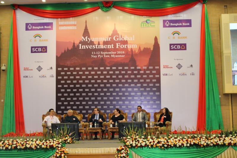 မြန်မာနိုင်ငံ ရင်းနှီးမြှုပ်နှံမှု ကော်မရှင်နှင့် ဟောင်ကောင်အခြေစိုက် Euromoney Institutional Investor (Asia) တို့ ပူးပေါင်း၍ Myanmar Global Investment Forum ကို ၂၀၁၈ ခုနှစ်၊ စက်တင်ဘာလ ၁၁ ရက်နေ့မှ ၁၂ ရက်နေ့ထိ နေပြည်တော်ရှိ မြန်မာ အပြည်ပြည်ဆိုင်ရာ ကွန်ဗင်းရှင်း ဗဟိုဌာန-၂ (Myanmar International Convention Center –MICC 2) ၌ ကျင်းပပြု လုပ်လျက် ရှိပါသည်။