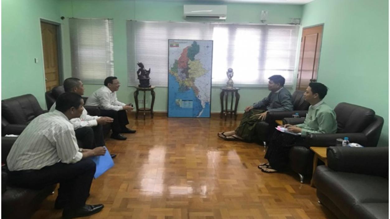 ရင်းနှီးမြှုပ်နှံမှုနှင့် ကုမ္ပဏီများ ညွှန်ကြားမှုဦးစီးဌာနမှ ခေတ္တညွှန်ကြားရေးမှူးချုပ် ဦးသန့်စင်လွင်သည် Royal King Land Manufacturing & Distribution Company Limited မှ ဥက္ကဋ္ဌ ဖြစ်သူ ဦးကြည်စိုးနှင့်အဖွဲ့အား ၂၀၁၉ ခုနှစ် ဇူလိုင်လ ၃ ရက်နေ့တွင် ရန်ကုန်မြို့၌ လက်ခံ တွေ့ဆုံခဲ့ပြီး ရင်းနှီးမြှုပ်နှံမှု လုပ်ထုံးလုပ်နည်းဆိုင်ရာ ကိစ္စရပ်များနှင့်စပ်လျဉ်း၍ ဆွေးနွေးခဲ့ပါ သည်။