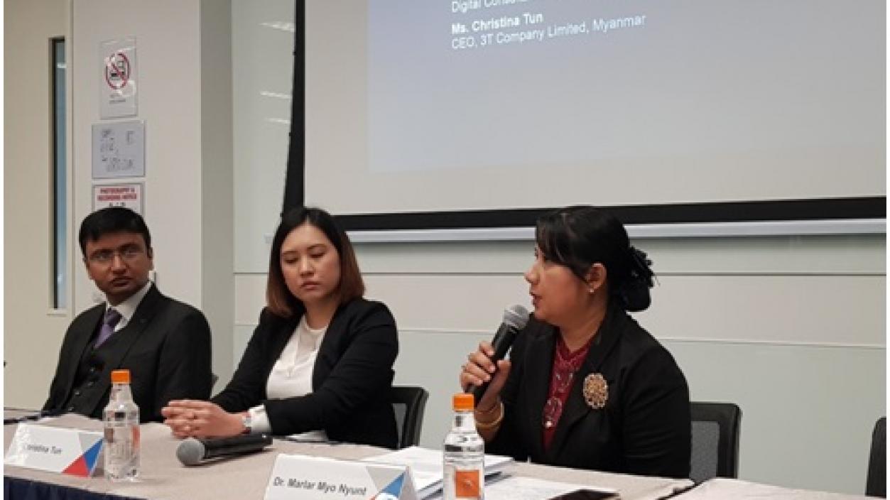 အဆိုပါဆွေးနွေးပွဲ၌ ဒုတိယညွှန်ကြားရေးမှူးချုပ် ဒေါက်တာမာလာမျိုးညွန့်သည် Latest Trends & Oppotunities for Real Estate and Hospitality Investment, Myanmar Emerging Retail Market & Future of E-commerce: Opportunities from Myanmar’s Rising Middle Class နှင့် Investment Regime & Arbitration in Myanmar – Safeguards for Investors & Investments ခေါင်းစဉ်များဖြင့် စကားဝိုင်းဆွေးနွေးပွဲများတွင် panelist အဖြစ် ပါဝင်ဆွေးနွေးခဲ့ပါသည်။