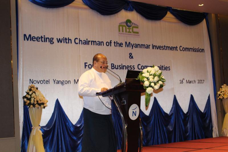 ယင်းနောက် မြန်မာနိုင်ငံရင်းနှီးမြှုပ်နှံမှုကော်မရှင်အတွင်းရေးမှူး၊ ရင်းနှီးမြှုပ်နှံမှုနှင့်ကုမ္ပဏီ များညွှန်ကြားမှုဦးစီးဌာန၊ ညွှန်ကြားရေးမှူးချုပ် ဦးအောင်နိုင်ဦးက လက်ရှိနိုင်ငံခြား ရင်းနှီး မြှုပ်နှံမှုအခြေအနေနှင့်စပ်လျဉ်း၍ ရှင်းလင်းဆွေးနွေးရာ နိုင်ငံခြားတိုက်ရိုက် ရင်းနှီးမြှုပ်နှံမှု စီမံကိန်း(Foreign Direct Investment Promotion Plan)၏ နှစ်လတ်ကာလ ရည်မှန်းချက် အရ ၂၀၁၆ -၂၀၁၇ ကာလအတွက် ရည်မှန်းချက်မှာ အမေရိကန် ဒေါ်လာ ၆ ဘီလီယံဖြစ်ပြီး ၂၀၁၇ ခုနှစ်၊ ဖေဖော်ဝါရီလအထိ နိုင်ငံခြား ရင်းနှီးမြှုပ်နှံမှုမှာ အမေရိကန်ဒေါ်လာ ၆.၂၇ ဘီလီယံ ဖြစ်၍ ရည်မှန်းချက်ကို ကျော်လွန်ခဲ့ပြီဖြစ်ကြောင်း၊ ပြည်တွင်းနှင့်ပြည်ပမှ ရင်းနှီးမြှုပ်နှံသူ များအကြား တန်းတူအခွင့်အရေးဖြင့် ယှဉ်ပြိုင် နိုင်စေရန် အလို့ငှာ မူဝါဒပိုင်းဆိုင်ရာ ပြုပြင် ပြောင်းလဲမှုများ ဆောင်ရွက်ခဲ့ရာ ၂၀၁၆ ခုနှစ် အောက်တိုဘာလတွင် မြန်မာနိုင်ငံ ရင်းနှီးမြှုပ်နှံမှု ဥပဒေကို ပြဋ္ဌာန်းခဲ့ပြီး လာမည့် ၂၀၁၇-၂၀၁၈ ဘဏ္ဍာနှစ်တွင် စတင် အကောင်အထည် ဖော်နိုင်စေရန် အလို့ငှာ လိုအပ်သည့် နည်းဥပဒေကို ထုတ်ပြန်နိုင်ရန် ဆောင်ရွက်လျက်ရှိ ကြောင်း၊ စီးပွားရေးလုပ်ငန်း အမျိုးအစားများ စာရင်းနှင့် ရင်းနှီးမြှုပ်နှံမှု မြှင့်တင်မည့် ကဏ္ဍ များစာရင်းကိုလည်း ၂၀၁၇ ခုနှစ် မတ်လမကုန်မီ ထုတ်ပြန်မည် ဖြစ်ကြောင်းနှင့် မြန်မာနိုင်ငံ ရင်းနှီးမြှုပ်နှံမှုဥပဒေကို စတင်အာဏာ သက်ဝင်လာပါက ရင်းနှီးမြှုပ်နှံသူများအနေဖြင့် လုပ်ငန်း များကို ရိုးရှင်း လွယ်ကူစွာ ဆောင်ရွက်နိုင်မည်ဖြစ်ပြီး အကာအကွယ်များလည်း ပိုမိုပေးနိုင်မည် ဖြစ်ကြောင်း ပြောကြားခဲ့ပါသည်။