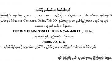 မြန်မာနိုင်ငံကုမ္ပဏီများဥပဒေ ၂၀၁၇ အရ ကျင့်သုံးဆောင်ရွက်သော အီလက်ထရောနစ်ကုမ္ပဏီ မှတ်ပုံတင်စနစ် Myanmar Companies Online “MyCO” နှင့်အတူ ၂၀၁၈ ခုနှစ်...