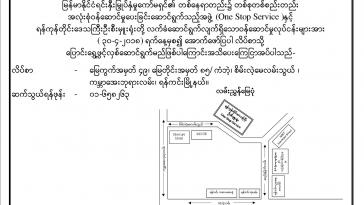 မြန်မာနိုင်ငံရင်းနှီးမြှုပ်နှံမှုကော်မရှင်၏ တစ်နေရာတည်း၌ တစ်စုတစ်စည်း တည်း အလုံးစုံ ဝန်ဆောင်မှု ပေးခြင်း ဆောင်ရွက်သည့်အဖွဲ့(One Stop Service )...