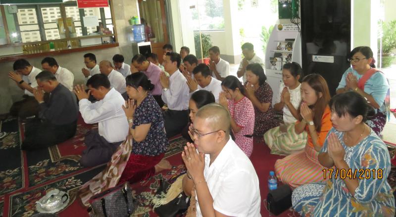၁၃၈၀ ခုနှစ် မြန်မာနှစ်သစ်မင်္ဂလာ အန္တရယ်ကင်း ပရိတ်တရားတော်နာယူပွဲကို ရန်ကုန်မြို့ရှိ ရင်းနှီး မြှုပ်နှံမှုနှင့် ကုမ္ပဏီများ ညွှန်ကြားမှု ဦးစီးဌာန (ရုံးချုပ်) တွင် ၂၀၁၈ ခုနှစ် ဧပြီလ ၁၇ ရက်နေ့ နေ့လည်တွင် ကျင်းပခဲ့ပါသည်။