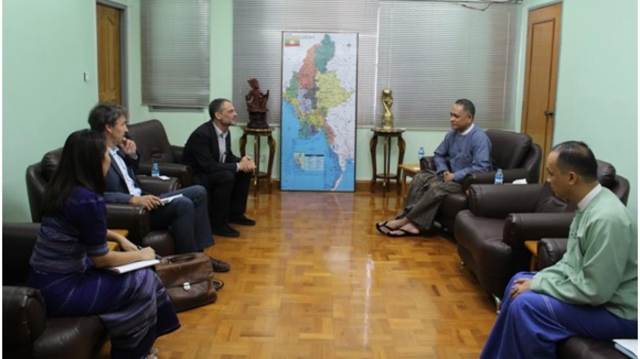 GIZ မှ Head of Programme ဖြစ်သူ Mr. Tobias Stolz နှင့်အဖွဲ့ သည် ရင်းနှီးမြှုပ်နှံမှုနှင့် ကုမ္ပဏီများညွှန် ကြားမှုဦးစီးဌာန၊ ညွှန်ကြားရေးမှူးချုပ် ဦးအောင်နိုင်ဦးနှင့် ၂၀၁၈ ခုနှစ် ဇွန်လ (၁၈) ရက်နေ့တွင် လာရောက်တွေ့ဆုံပြီး ပူးပေါင်းဆောင်ရွက်မှုဆိုင်ရာ ကိစ္စရပ်များနှင့် စပ်လျဉ်း၍ ဆွေးနွေးခဲ့ကြပါသည်။