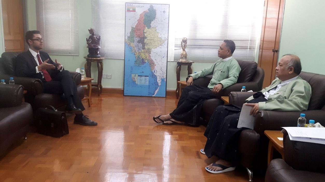 ရင်းနှီးမြှုပ်နှံမှုနှင့် ကုမ္ပဏီများညွှန်ကြားမှုဦးစီးဌာန၏ ညွှန်ကြားရေးမှူးချုပ် ဦးအောင်နိုင်ဦးသည် Global Legal Myanmar မှ Managing Partner ဖြစ်သူ Mr. R. Michael Ghilezan, Esq. အား ၂၀၁၉ ခုနှစ် မတ်လ ၁၅ ရက်နေ့တွင် ရန်ကုန်မြို့၌ လက်ခံတွေ့ဆုံခဲ့ပြီး ရင်းနှီးမြှုပ်နှံမှုဆိုင်ရာ ကိစ္စရပ်များနှင့် စပ်လျဉ်း၍ ဆွေးနွေးခဲ့ကြပါသည်။