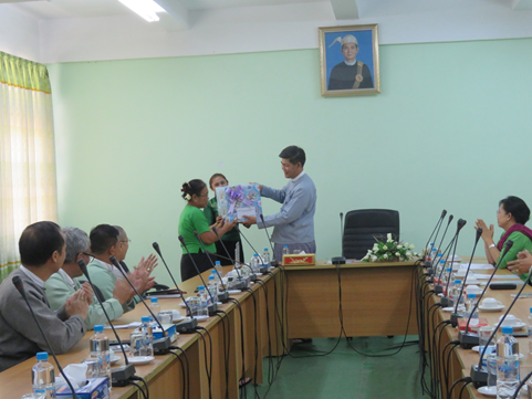 သက်ပြည့်ပင်စင်ခံစားမည့် ရုံးအုပ် ဒေါ်ကြည်ကြည်ဌေးအား ဂုဏ်ပြုအမှတ်တရ လက်ဆောင်ပေးအပ်ခြင်းအခမ်းအနား [1]