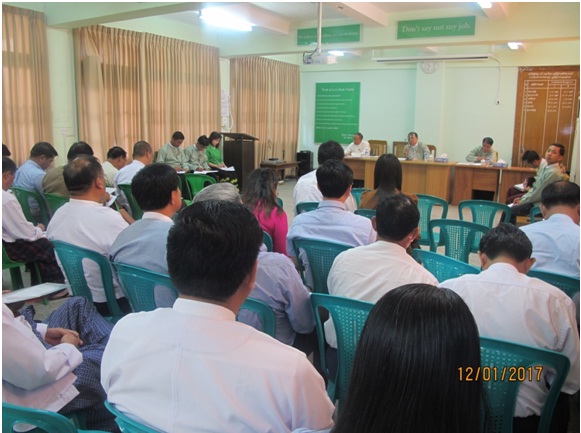 သစ်အခြေခံပစ္စည်းများ ထုတ်လုပ်ခြင်းနှင့် ဖြန့်ဖြူးရောင်းချသည့် ကုမ္ပဏီများ၏ သစ်စိုက်ခင်းများ လုပ်ငန်းဆောင်ရွက်နေမှု အခြေအနေ စိစစ်ခြင်း နှင့်စပ်လျဉ်းသည့် အစည်းအဝေးကို ၂၀၁၇ ခုနှစ်၊ ဇန်နဝါရီလ ၁၂ ရက်နေ့ နံနက်ပိုင်းတွင် ရင်းနှီးမြုပ်နှံမှုနှင့်ကုမ္ပဏီများ ညွှန်ကြားမှုဦးစီးဌာန၊ ရန်ကုန်မြို့၌ ကျင်းပပြုလုပ် ခဲ့ပါသည်။ အဆိုပါအစည်းအဝေးသို့ ရင်းနှီးမြှုပ်နှံမှုနှင့် ကုမ္ပဏီများညွှန်ကြားမှု ဦးစီးဌာနမှ ဒုတိယညွှန်ကြားရေးမှူးချုပ် ဦးဆောင်၍ ရင်းနှီးမြှုပ်နှံမှုနှင့် ကုမ္ပဏီများ ညွှန်ကြားမှုဦးစီးဌာန၊ သယံဇာတနှင့် သဘာဝပတ်ဝန်းကျင်ထိန်းသိမ်းရေး ဝန်ကြီးဌာန (ဌာနဆိုင်ရာပူးပေါင်းလုပ်ငန်းအဖွဲ့) နှင့် သစ်တောဦးစီးဌာနတို့မှ တာဝန်ရှိသူများနှင့် မြန်မာနိုင်ငံသားရင်းနှီးမြှုပ်နှံသူများ တက်ရောက်ကြပါသည်။ အဆိုပါ အခမ်းအနား တွင် မြန်မာနိုင်ငံရင်းနှီးမြှုပ်နှံမှုကော်မရှင်မှ မြန်မာနိုင်ငံသားများ ရင်းနှီးမြှုပ်နှံမှု ဥပဒေအရ ခွင့်ပြုမိန့်ချမှတ်ပေးခဲ့သည့် သစ်အခြေခံပစ္စည်းများ ထုတ်လုပ်ခြင်းနှင့် ဖြန့်ဖြူး ရောင်းချသည့် ကုမ္ပဏီများ၏ သစ်တောစိုက်ခင်းများ အကောင်အထည်ဖော်မှု အခြေအနေအား စိစစ်နိုင်ရေး ဆွေးနွေးခဲ့ကြပါသည်။