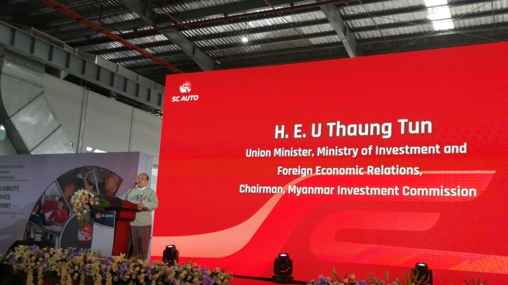 ရင်းနှီးမြှုပ်နှံမှုနှင့် နိုင်ငံခြားစီးပွားဆက်သွယ်ရေးဝန်ကြီးဌာန ပြည်ထောင်စုဝန်ကြီး၊ မြန်မာနိုင်ငံ ရင်းနှီးမြှုပ်နှံမှုကော်မရှင်ဥက္ကဋ္ဌ ဦးသောင်းထွန်းနှင့် ကော်မရှင်အဖွဲ့ဝင်များသည် ယနေ့နံနက်ပိုင်းက ရန်ကုန်တိုင်းဒေသကြီး၊ မင်္ဂလာဒုံမြို့နယ်၊ ရန်ကုန်စက်မှုဇုန်ရှိ SC Auto ၏ မော်တော်ကား စက်ရုံဖွင့်ပွဲနှင့် မြန်မာနိုင်ငံတွင် ပထမဆုံးစတင်ထုတ်လုပ်သော SC Neustarဘတ်စ်ကားသစ် မိတ်ဆက်ပွဲ အခမ်းအနားသို့တက်ရောက်ခဲ့သည်။