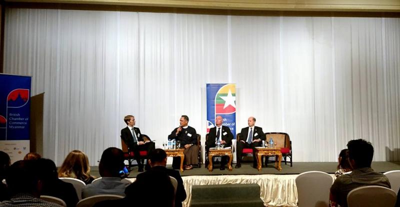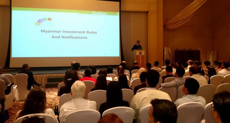 ရန်ကုန်မြို့ Sule Shangri-La Hotel တွင် ယနေ့ ညနေပိုင်း၌ British Chamber of Commerce Myanma မှ ကြီးမှူးကျင်းပသည့် “ Myanmar Investment Rules: Changes to the Law and the Effect on Business” အခမ်းအနားသို့ ညွှန်ကြားရေးမှူးချုပ် ဦးအောင်နိုင်ဦး တက်ရောက်ခဲ့ပြီး ၂၀၁၇ ခုနှစ် မတ်လ က အသစ်ပြဌာန်းခဲ့သည့် မြန်မာနိုင်ငံရင်းနှီး မြှုပ်နှံမှု နည်းဥပဒေပါ အဓိကအချက်အလက်များနှင့် စပ်လျဉ်းပြီး ရှင်းလင်းပြောကြားခဲ့ပါသည်။ ဒါ့ပြင် စကားဝိုင်း ဆွေးနွေးပွဲတွင်လည်း ပါဝင်ဆွေးနွေးပေးခဲ့ပြီး တက်ရောက်လာသူများ၏ မေးမြန်းချက် များကိုလည်းပြန်လည် ဆွေးနွေးပြောကြားခဲ့ပါသည်။