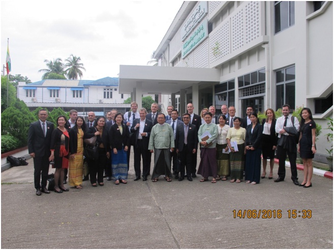 Europe-ASEAN Business Alliance (EABA) မှ အတွင်းရေးမှူး, Mr. Hans Vriens ဦးဆောင်သော ကိုယ်စားလှယ်အဖွဲ့သည် ရင်းနှီးမြှုပ်နှံမှုနှင့်ကုမ္ပဏီများညွှန်ကြားမှုဦးစီးဌာန၊ ရန်ကုန်မြို့၌ (၁၄-၆-၂၀၁၆) ရက်နေ့ ၁၄:၃၀ နာရီတွင် လာရောက်၍ ရင်းနှီးမြှုပ်နှံမှု ဆိုင်ရာကိစ္စများနှင့် စပ်လျဉ်း ၍ ဆွေးနွေးခဲ့ကြပါသည်။