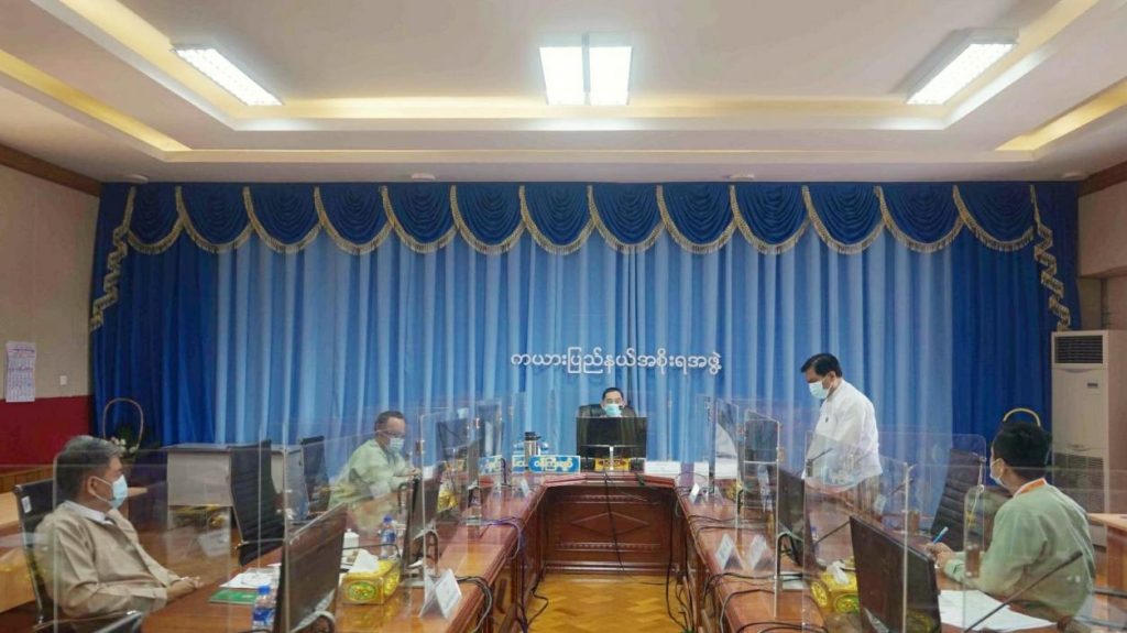 ကယားပြည်နယ်ရင်းနှီးမြှုပ်နှံမှု ကော်မတီ၏ (၅/၂၀၂၁) ကြိမ်မြောက် အစည်းအဝေးကို ၂၀၂၁ ခုနှစ်၊ အောက်တိုဘာလ ၂၉ ရက်နေ့တွင် လွိုင်ကော်မြို့၊ ကယားပြည်နယ် အစိုးရအဖွဲ့ရုံး အစည်းအဝေးခန်းမ၌ ကျင်းပပြုလုပ်ခဲ့ရာ ကယားပြည်နယ် ရင်းနှီးမြှုပ်နှံမှု ကော်မတီဥက္ကဌ ဦးခင်မောင်ဦးနှင့် ကော်မတီအဖွဲ့ဝင်များ တက်ရောက်ခဲ့ကြပါသည်။