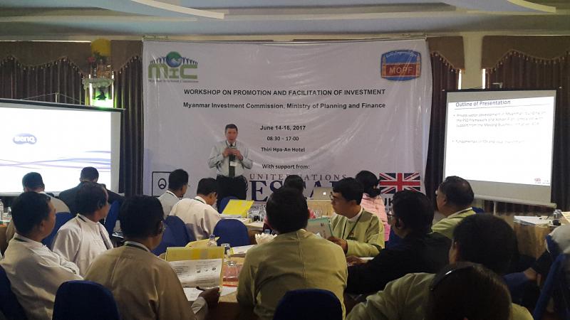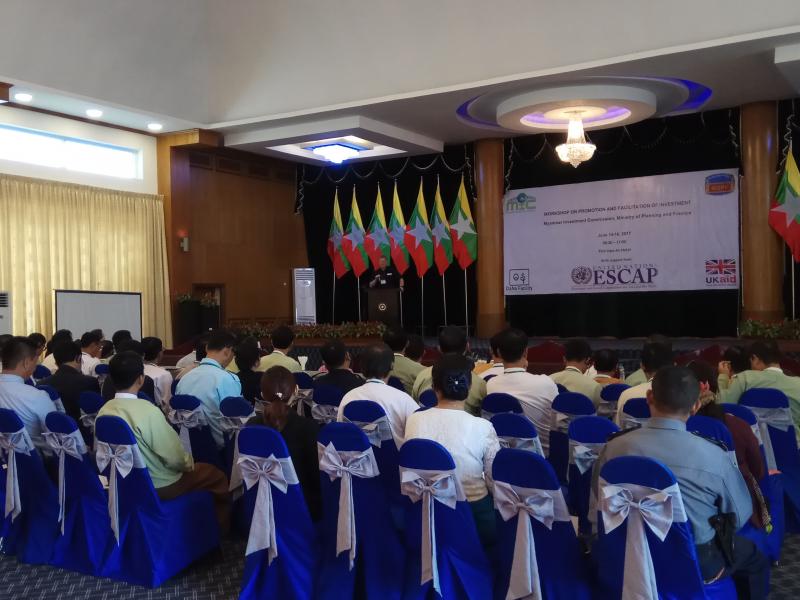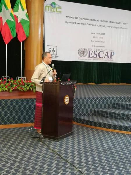 မြန်မာနိုင်ငံရင်းနှီးမြှပ်နှံမှုကော်မရှင်၊ United Nations Economic and Social Commission for Asia and the Pacific (UNESCAP) နှင့် DaNa Facility (UK Aid)တို့၏ ပူးပေါင်းစီစဉ်မှုဖြင့် ရင်းနှီးမြှုပ်နှံမှုမြှင့်တင်ရေးနှင့် အဆင်ပြေချောမွေ့ရေး အလုပ်ရုံ ဆွေးနွေးပွဲ (အောက်မြန်မာပြည်)ဖွင့်ပွဲ အခမ်းအနားအား ကရင်ပြည်နယ်၊ ဘားအံ မြို့တွင် ၂၀၁၇ ခုနှစ်၊ ဇွန်လ ၁၄ ရက်နေ့၌ ကျင်းပပြုလုပ်ခဲ့ပါသည်။