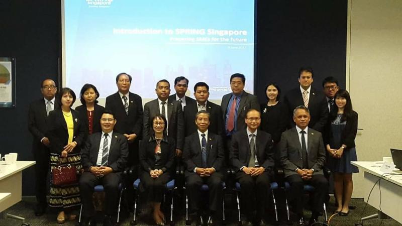 ၂၀၁၇ခုနှစ် ဇွန်လ ၉ ရက်နေ့တွင် (၆) ကြိမ်မြောက် မြန်မာ-စင်ကာပူ ဝန်ကြီး အဆင့် ပူးတွဲလုပ်ငန်းကော်မတီ အစည်းအဝေးသို့ တက်ရောက်ရန် သွားရောက်လျက်ရှိသည့် မြန်မာနိုင်ငံ ရင်းနှီးမြှုပ်နှံမှုကော်မရှင်၊ ဥက္ကဋ္ဌ၊ စီမံကိန်းနှင့် ဘဏ္ဍာရေးဝန်ကြီး ဌာန၊ပြည်ထောင်စုဝန်ကြီး ဦးကျော်ဝင်းနှင့် မြန်မာနိုင်ငံ ရင်းနှီးမြှုပ်နှံမှုကော်မရှင်၊ အတွင်းရေးမှူး၊ ရင်းနှီးမြှုပ်နှံမှုနှင့် ကုမ္ပဏီများညွှန်ကြားမှု ဦးစီးဌာန ညွှန်ကြား ရေးမှူးချုပ် ဦးအောင်နိုင်ဦး တို့ပါဝင်သော ကိုယ်စားလှယ်အဖွဲ့သည် Singapore International Commercial Court နှင့် SPRING Singapore တို့သို့ လုပ်ငန်း ဆောင်ရွက်မှု များအား သွားရောက်လေ့လာခဲ့ပါသည်။