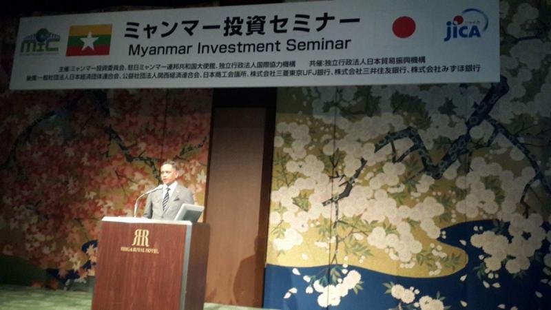 နှစ်နိုင်ငံကုန်သွယ်မှုနှင့် ရင်းနှီးမြှုပ်နှံမှုမြှင့်တင်ရေး အထောက်အကူဖြစ်စေရန် အတွက် ဂျပန်နိုင်ငံ၊ အိုဆာကာမြို့တွင် မြန်မာရင်းနှီးမြှုပ်နှံမှုဆွေးနွေးပွဲကို ၂၀၁၇ ခုနှစ် ဇွန်လ၁ ရက်နေ့တွင် အိုဆာကာမြို့ရှိ Sanraku၊ Rihga Royal Hotel Osaka ကျင်းပ ပြုလုပ်ခဲ့ပါသည်။