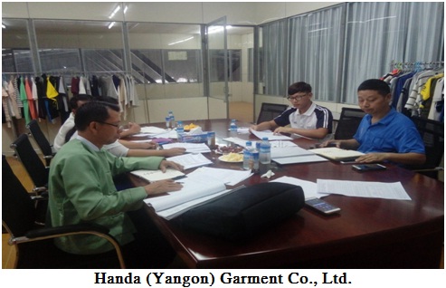 မြန်မာနိုင်ငံရင်းနှီးမြှုပ်နှံမှုကော်မရှင်၏ ခွင့်ပြုမိန့်ဖြင့် ဆောင်ရွက်လျက်ရှိသော ရန်ကုန်တိုင်း ဒေသကြီး၊ လှိုင်သာယာမြို့နယ်၊ ရွှေလင်ပန်းစက်မှုဇုန်ရှိ Myanmar Haoyang International Garment Co., Ltd. ၊ Spirolite(Myanmar) Co., Ltd. နှင့် Handa (Yangon) Garment Co., Ltd. တို့သို့ ရင်းနှီးမြှုပ်နှံမှုနှင့်ကုမ္ပဏီများညွှန်ကြားမှူဦးစီးဌာန၊ အလုပ်သမားညွှန်ကြားမှုဦးစီး ဌာန၊ ပတ်၀န်းကျင်ထိန်းသိမ်းရေးဦးစီးဌာနနှင့် စက်မှုကြီးကြပ်ရေးဦးစီးဌာနတို့မှ တာဝန်ရှိ ပုဂ္ဂိုလ်များ ပါ၀င်သည့် ကွင်းဆင်းစစ်ဆေးရေးအဖွဲ့သည် ၂၀၁၆ခုနှစ်၊ စက်တင်ဘာလ ၁ ရက်နေ့တွင် သွားရောက်စစ်ဆေးပြီး လိုအပ်သည်များကို ပေါင်းစပ်ညှိနှိုင်းဆောင်ရွက် ပေးခဲ့ပါသည်။