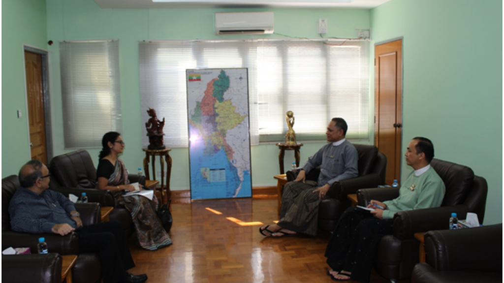 ရင်းနှီးမြှုပ်နှံမှုနှင့်ကုမ္ပဏီများညွှန်ကြားမှုဦးစီးဌာနမှ ညွှန်ကြားရေးမှူးချုပ် ဦးအောင်နိုင်ဦးသည် မြန်မာနိုင်ငံဆိုင်ရာ အိန္ဒိယနိုင်ငံသံရုံး၊ Economic & Commercial ဆိုင်ရာ First Secretary ဖြစ်သူ Ms. Shweta Singh နှင့်အဖွဲ့အား ရန်ကုန်မြို့၌ ၂၀၁၉ ခုနှစ် ဇန်နဝါရီလ ၃၁ ရက်နေ့တွင် လက်ခံတွေ့ဆုံခဲ့ပြီး India-Myanmar Investment Development Initiative ပွဲကျင်းပရေးဆိုင်ရာ ကိစ္စရပ်များနှင့်စပ်လျဉ်း၍ ဆွေးနွေးခဲ့ကြပါသည်။