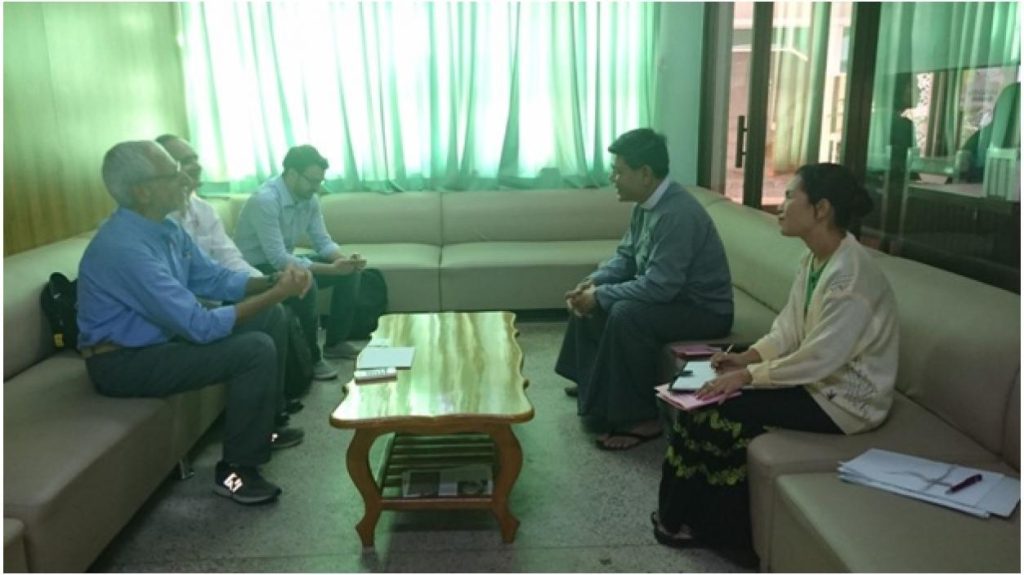 အီတလီနိုင်ငံ၊ Dorapal S.p.a ကုမ္ပဏီမှ ဗိသုကာပညာရှင်ဖြစ်သူ Mr.Federico De Giuli ဦးဆောင်သော ကိုယ်စားလှယ်အဖွဲ့သည် ရင်းနှီးမြှုပ်နှံမှုနှင့်ကုမ္ပဏီများ ညွှန်ကြားမှုဦးစီးဌာန၊ ဒုတိယညွှန်ကြားရေးမှူးချုပ်အား ရန်ကုန်မြို့၌ ၂၀၁၆ ခုနှစ် နိုဝင်ဘာလ ၂၃ ရက်နေ့ နေ့လည်ပိုင်းတွင် လာရောက်တွေ့ဆုံပြီး ရင်းနှီးမြှုပ်နှံမှုဆိုင်ရာ ကိစ္စများနှင့် စပ်လျဉ်း၍ ဆွေးနွေးခဲ့ကြပါသည်။