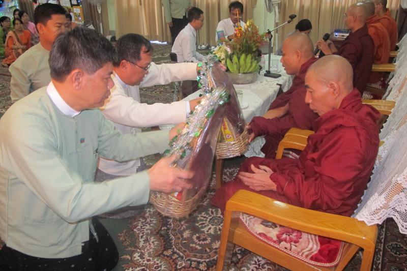 အခမ်းအနားအပြီးတွင် ညွှန်ကြားရေးမှူးချုပ်နှင့် ဝန်ထမ်းများမှ ကြွရောက်တော်မူ ကြသည့် ဆရာတော်ကြီးများအား နေ့ဆွမ်း ဆက်ကပ်လှူဒါန်းကြသည်။