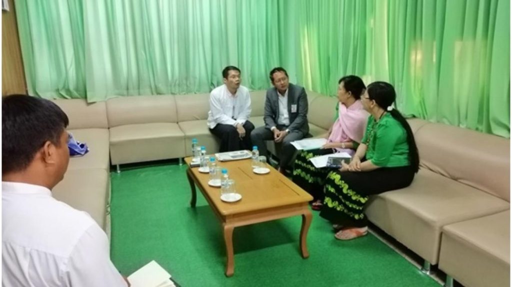 ရင်းနှီးမြှုပ်နှံမှုနှင့် ကုမ္ပဏီများ ညွှန်ကြားမှု ဦးစီးဌာနမှ ဒုတိယညွှန်ကြားရေးမှူးချုပ် ဒေါ်တင်အေးဟန် သည် Sein Hinn Co., Ltd မှ အမှုဆောင်ဒါရိုက်တာ ဖြစ်သူ ဦးမျိုးညွန့်ထူးနှင့် Daiwa House Industry Co., Ltd မှ Deputy General Manager ဖြစ်သူ Mr. Sean Tokunaga နှင့် အဖွဲ့အား ၂၀၁၉ ခုနှစ် မတ်လ ၂၁ ရက်နေ့တွင် ရန်ကုန်ရုံးချုပ်၌ တွေ့ဆုံခဲ့ပြီး ရင်းနှီးမြှုပ်နှံမှုဆိုင်ရာ လုပ်ထုံးလုပ်နည်းကိစ္စရပ် များနှင့် စပ်လျဉ်း၍ ဆွေးနွေးခဲ့ကြပါသည်။