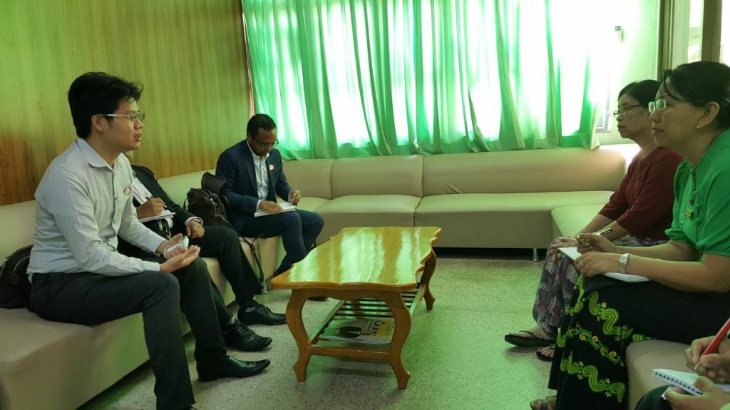 Myanmar Fiber Optic Communication Network Co.,Ltd မှ Director ဖြစ်သူ Mr. Roye နှင့်International Finance Corporation (IFC) မှ Investment Officer ဖြစ်သူ Mr. Harmish Rokadia ဦးဆောင်သော ကိုယ်စားလှယ်အဖွဲ့သည် တွဲဖက်အတွင်းရေးမှူး၊ မြန်မာနိုင်ငံရင်းနှီးမြှုပ်နှံမှု ကော်မရှင်နှင့် (၁၄-၁၂-၂၀၁၆)ရက်နေ့ နံနက်ပိုင်းတွင် လာရောက်တွေ့ဆုံ၍ ရင်းနှီးမြှုပ်နှံမှုဆိုင်ရာကိစ္စရပ် များနှင့် စပ်လျဉ်း၍ ဆွေးနွေးခဲ့ပါသည်။